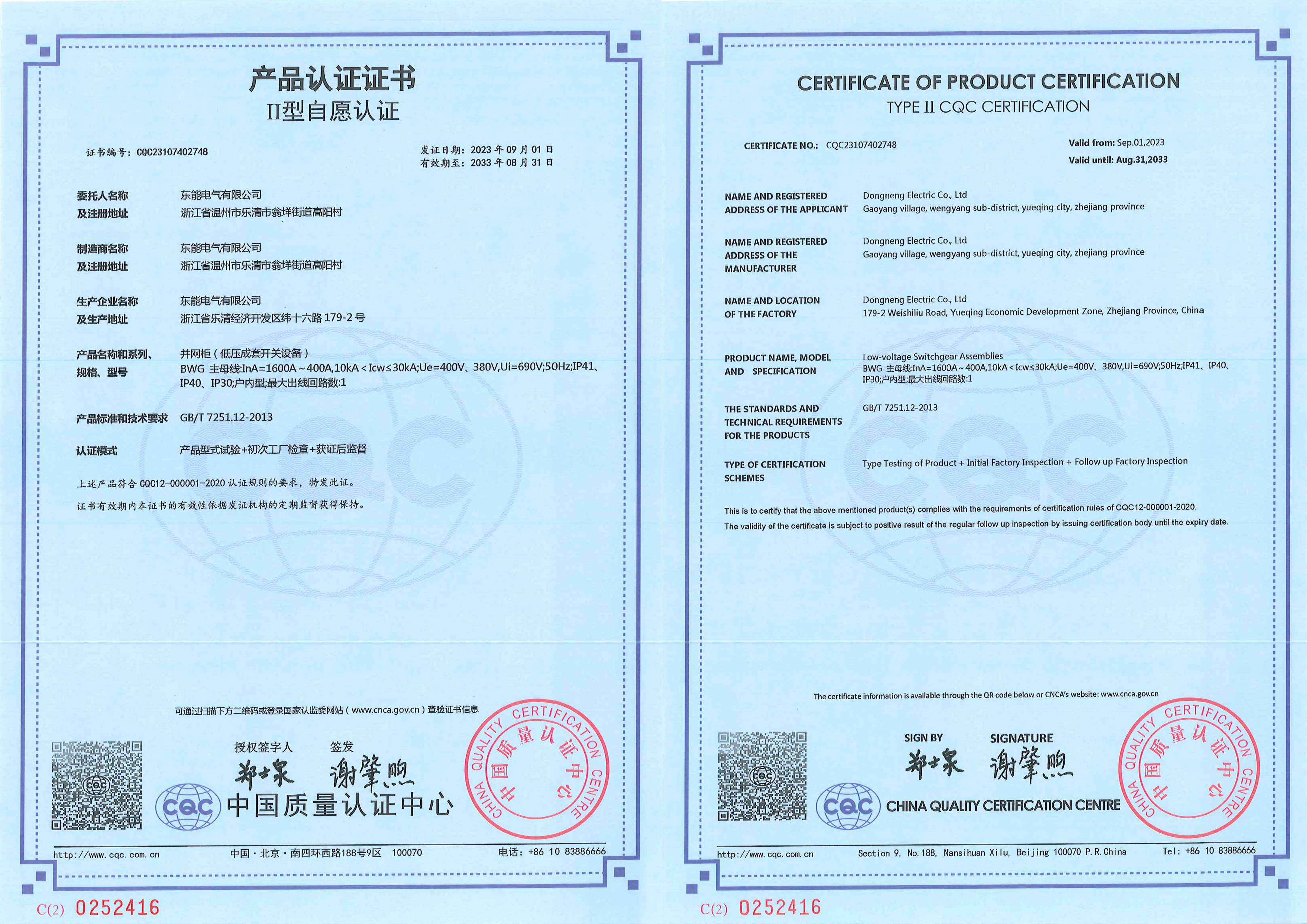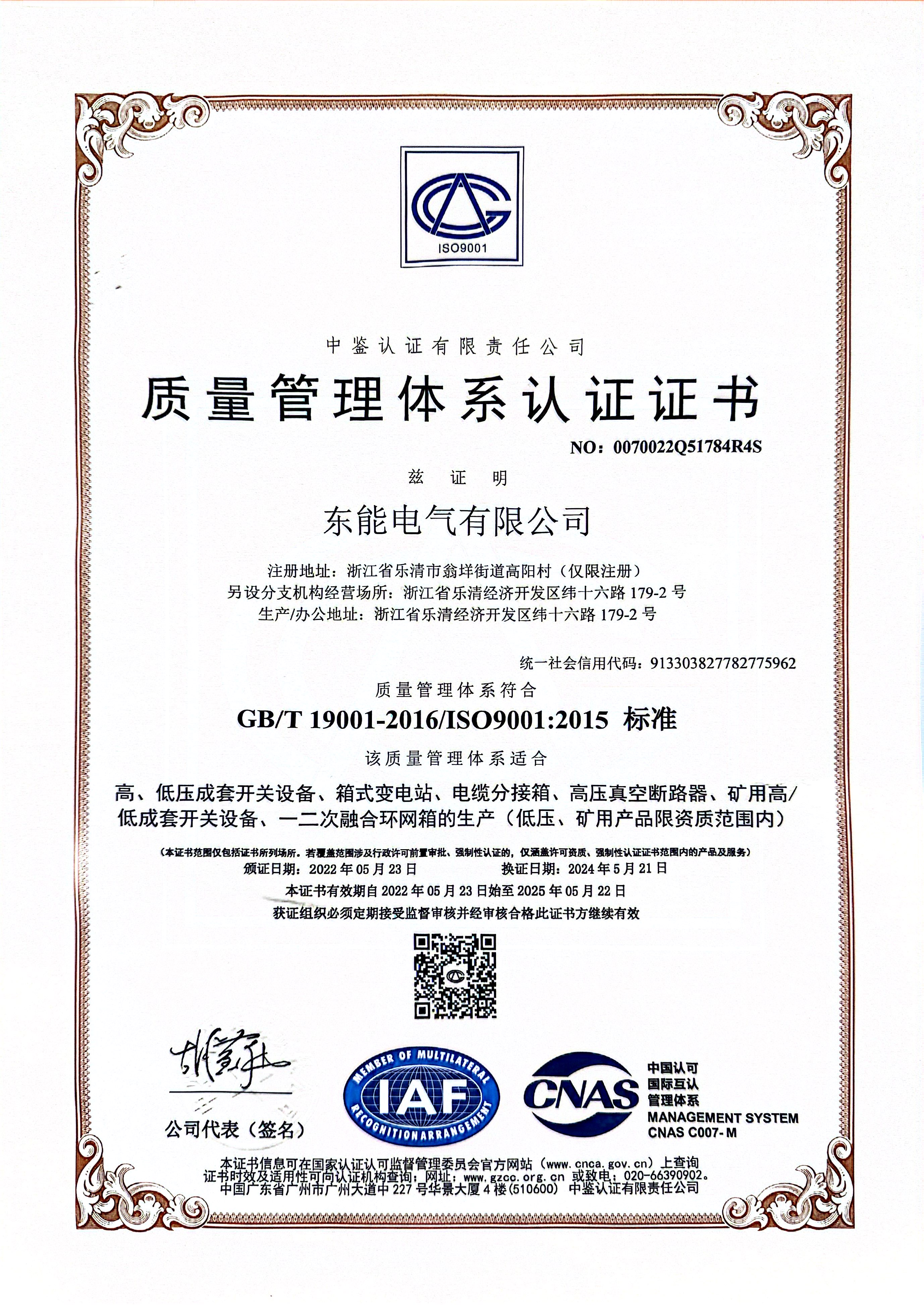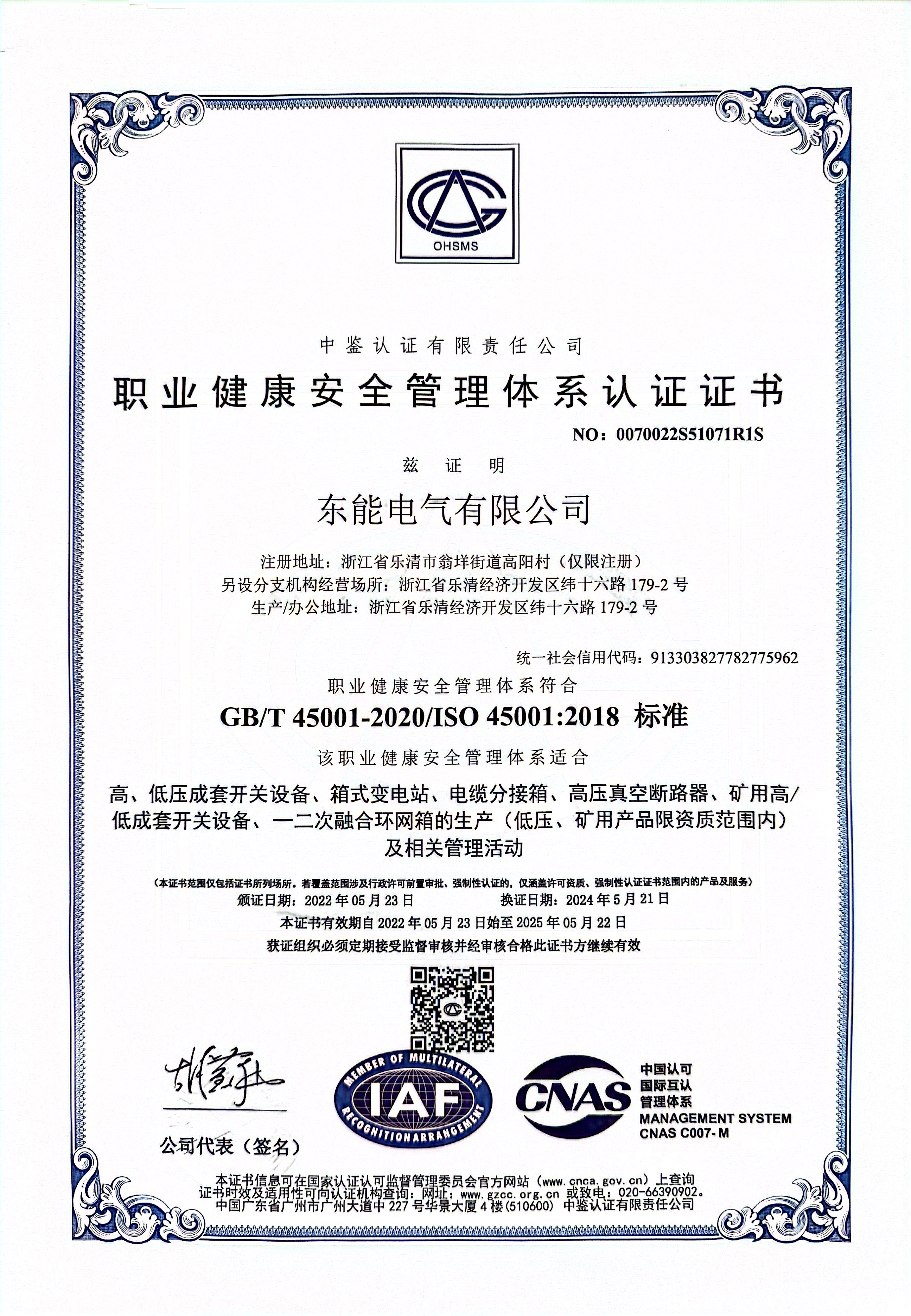 公司具備專業的現代化生產車間, 擁有雄厚的技術力量、精湛的生產設備、先進的工藝水平、嚴格的管理手段。公司通過ISO9001質量管理體系、ISO14001環境管理體系、ISO45001職業健康安全管理體系,并通過國家權威認證機構的各類型式試驗及CCC、CQC認證,為客戶提供高質量產品以及優秀的全面服務。