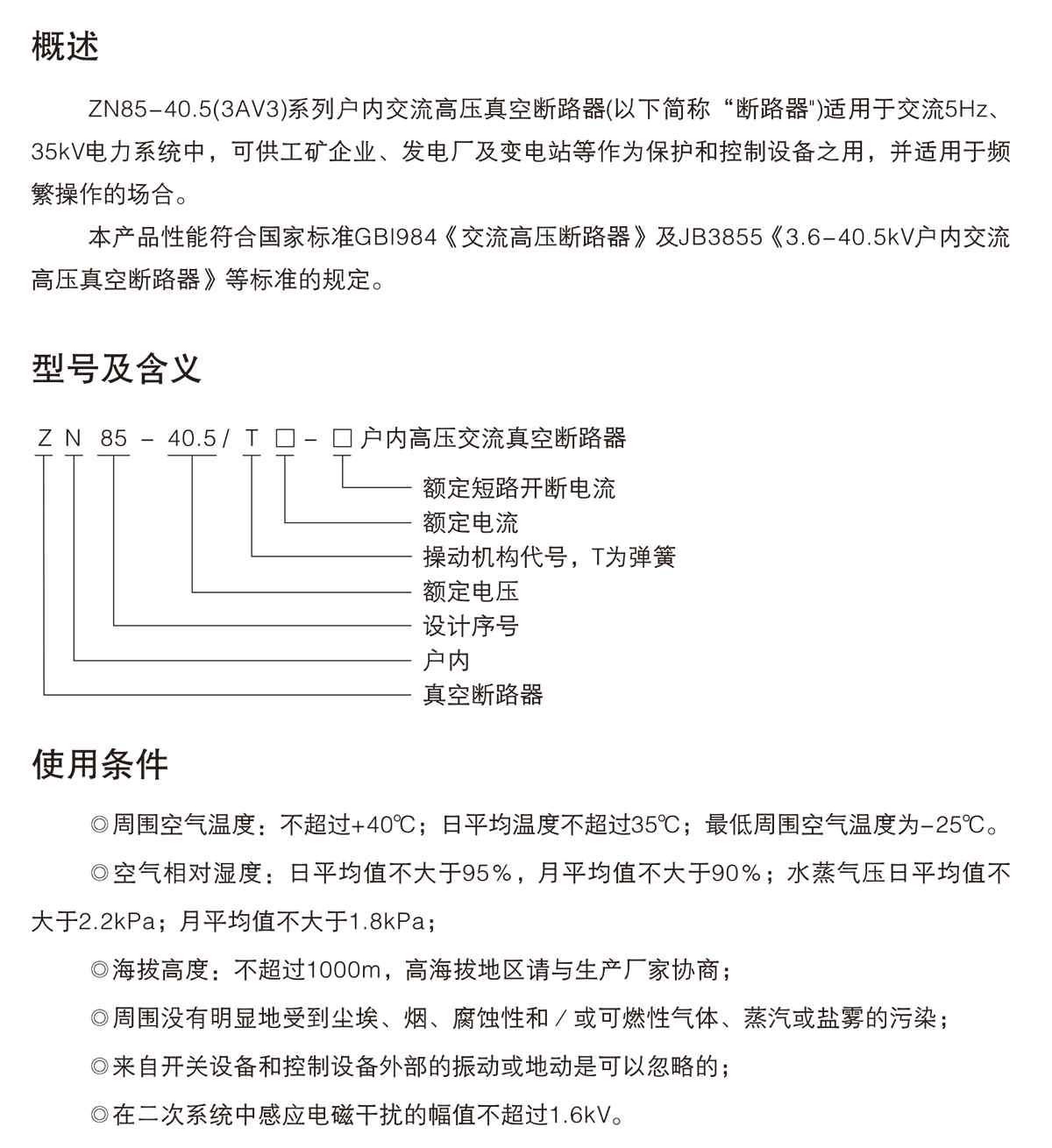 ZN85-40.5系列戶內高壓交流真空斷路器