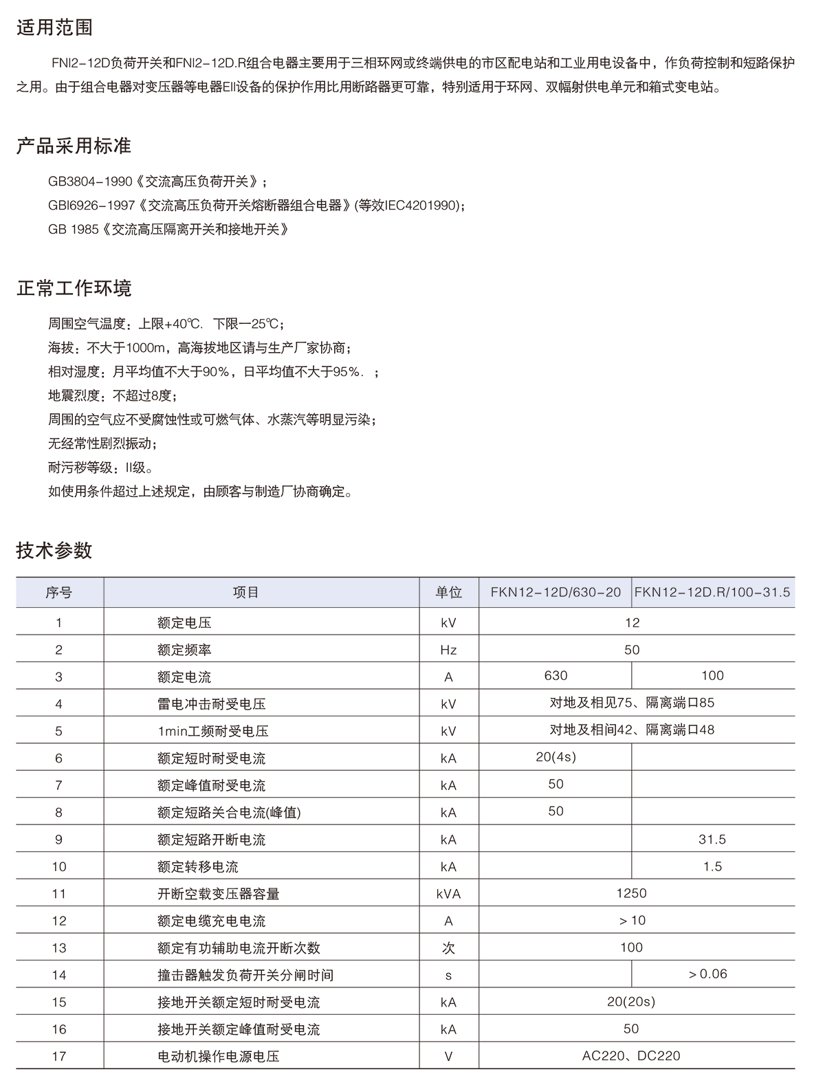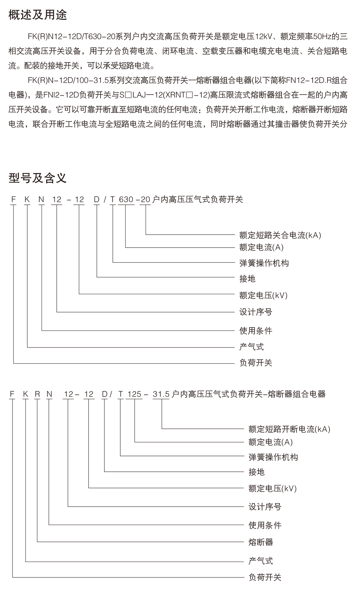 FK(R)N12-12D/T系列戶內高壓交流壓氣式負荷開關-熔斷器組合電器
